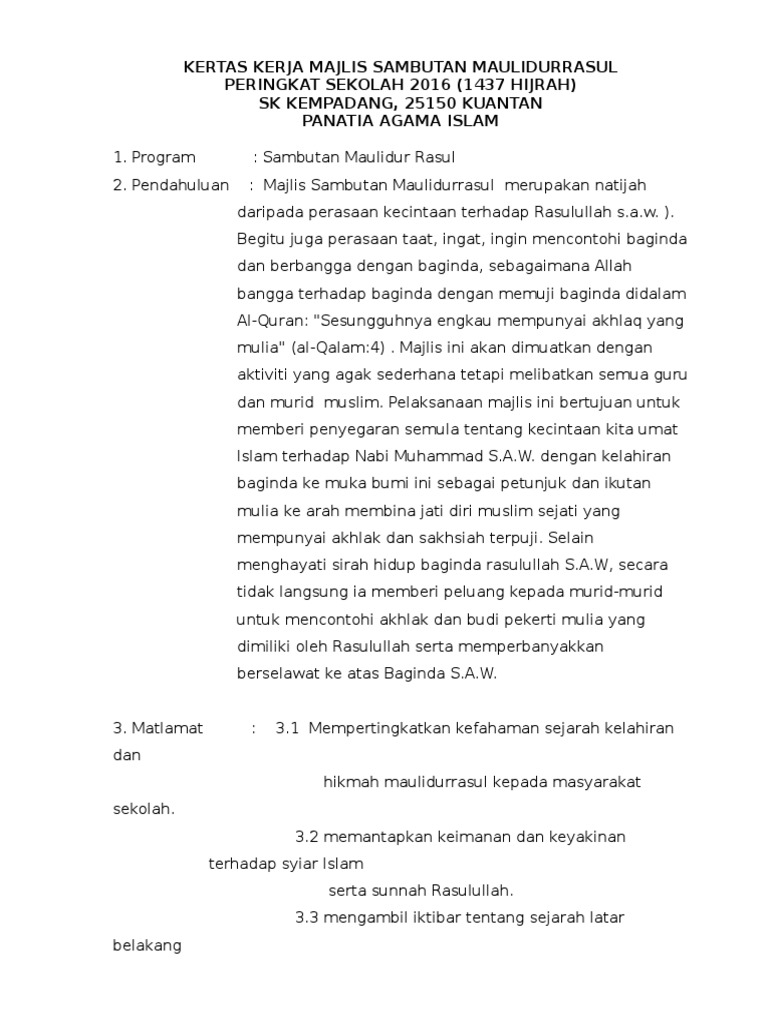 Contoh Kertas Kerja Maulidurrasul 2016 Pdf