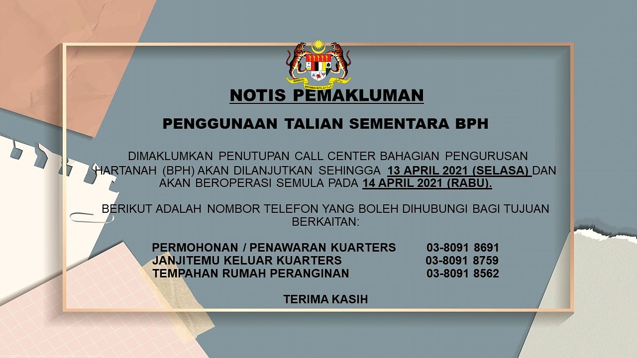 تويتر Bahagian Pengurusan Hartanah على تويتر Dimaklumkan Penutupan Call Center Bph Akan Dilanjutkan Sehingga 13 April 2021 Selasa Dan Akan Beroperasi Semula Pada 14 April 2021 Rabu Permohonan Penawaran Kuarters